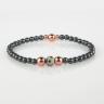 In den Farben Roségold und Gunmetal erstrahlt dieses hübsche Armband, das durch eine Perle aus Dalmatiner Jasper ergänzt wurde.